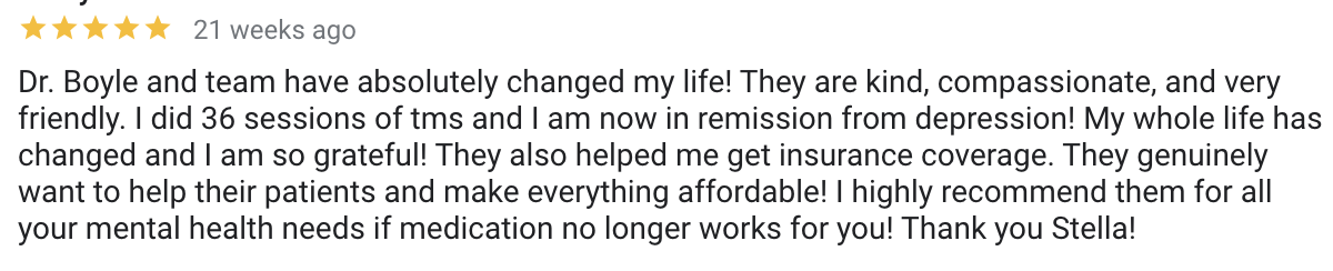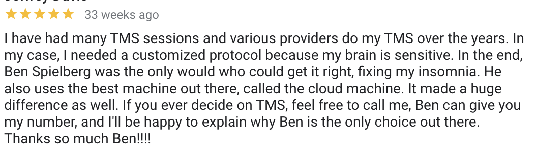 Patients undergoing Deep TMS treatment often report experiencing a marked improvement of their well-being within three weeks of the initial session. Deep TMS was reported to have even higher efficacy rates within a real-life clinical setting, approximately 75% achieved a beneficial clinical response, and one of two patients achieved remission.